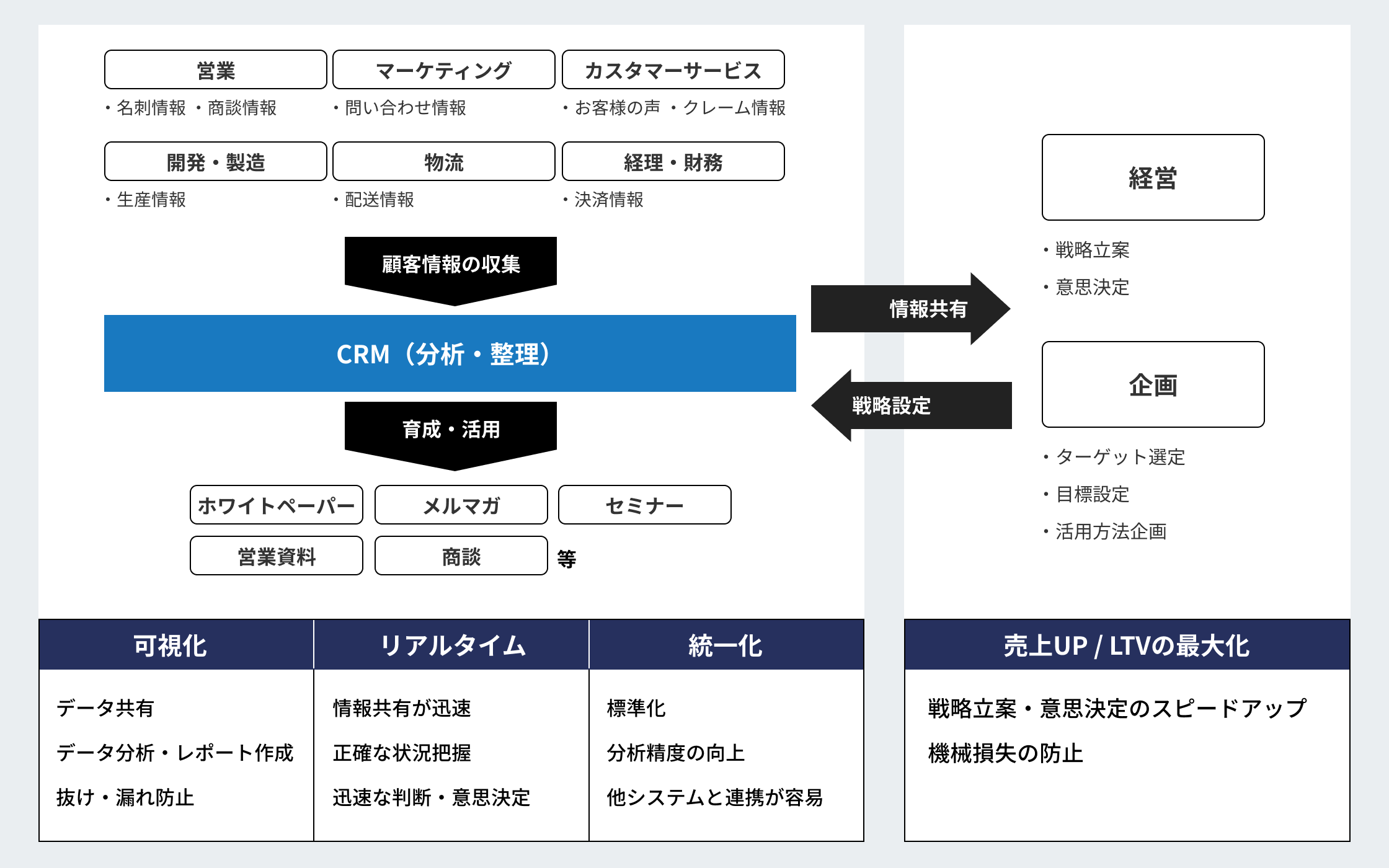 顧客情報の収集と活用を基軸としたデジタルマーケティング施策によって、オンライン・オフラインに限らず顧客接点を創出し、効果的なアプローチを行えるようになります。